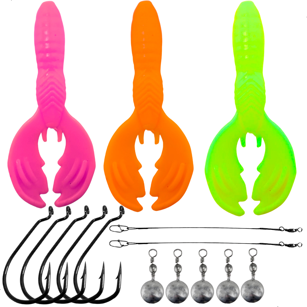 Kit 3 Iscas Mini Craw + Anzol Offset + Chicote + Chumbada 10g