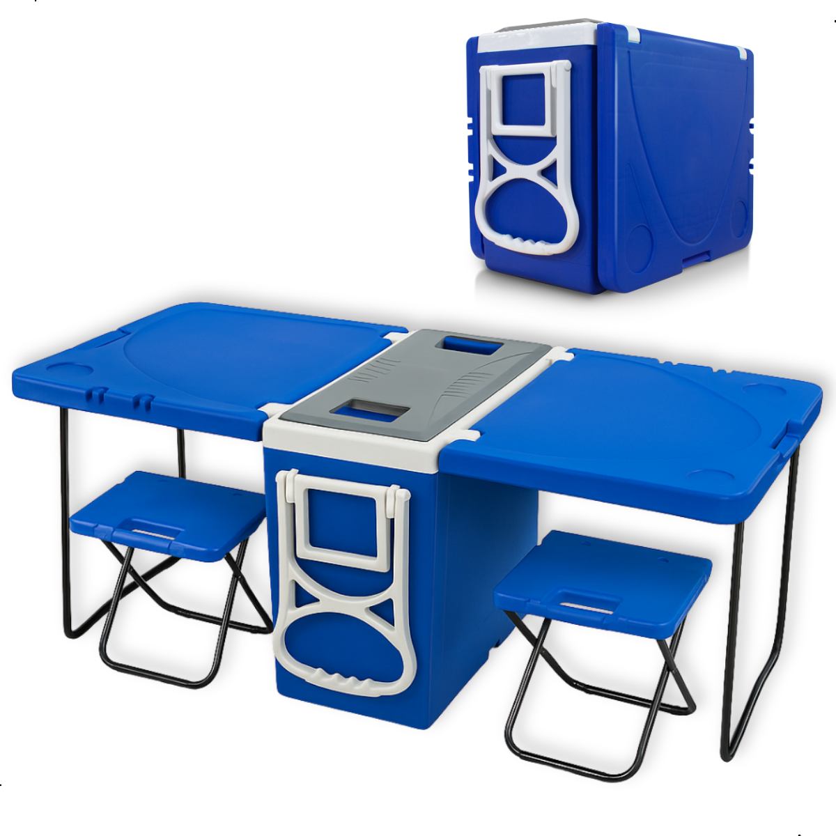 A Caixa Térmica Multifuncional 32 L 5 em 1 reúne conforto e praticidade para seu lazer: refrigera bebidas e alimentos, Vira uma mesa retráteis, com duas cadeiras/banquetas embutidas e ainda rodas para transporte fácil. Ideal para praia, camping, churrasco ou qualquer momento ao ar livre.