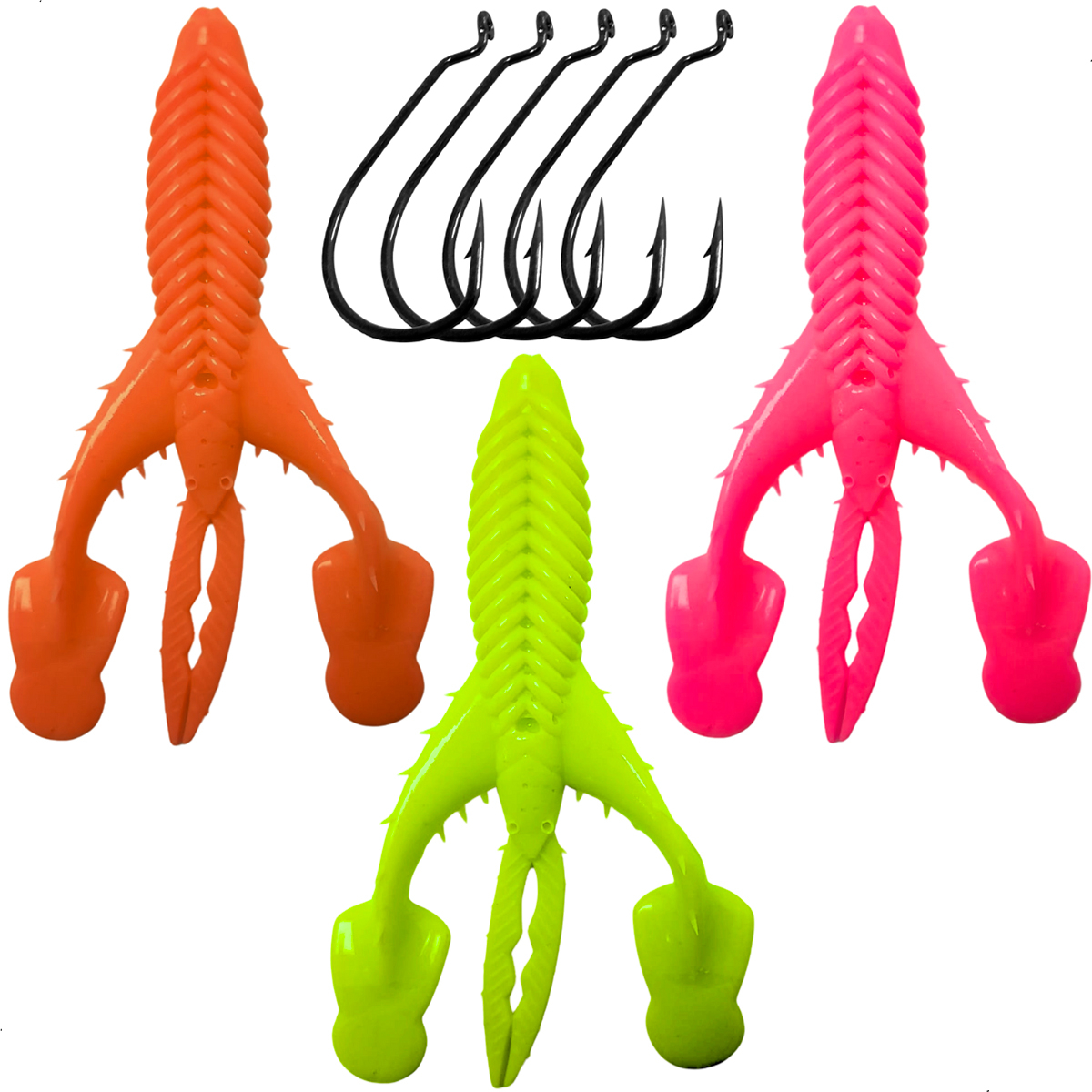 Kit 3 Iscas Craw Padlle + Anzol OffSet 4/0 5pçs