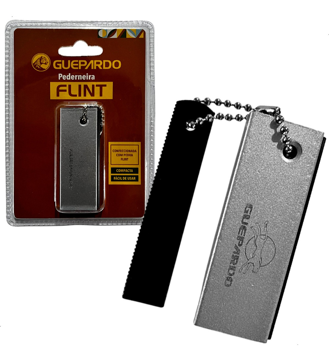 Fabricada com pedra flint, liga de alumínio e magnésio, além de lâmina de ignição em aço revestido, ela oferece alta durabilidade e desempenho mesmo em condições adversas.